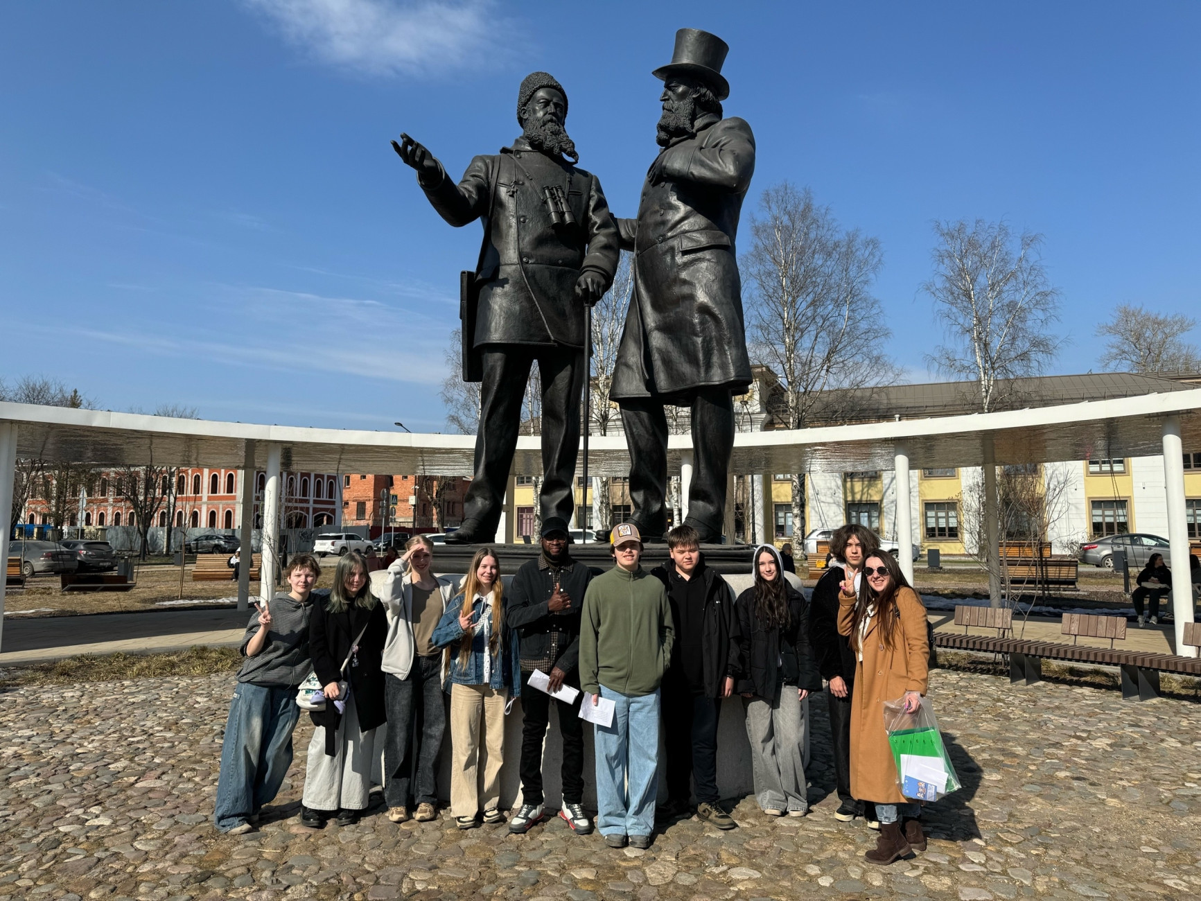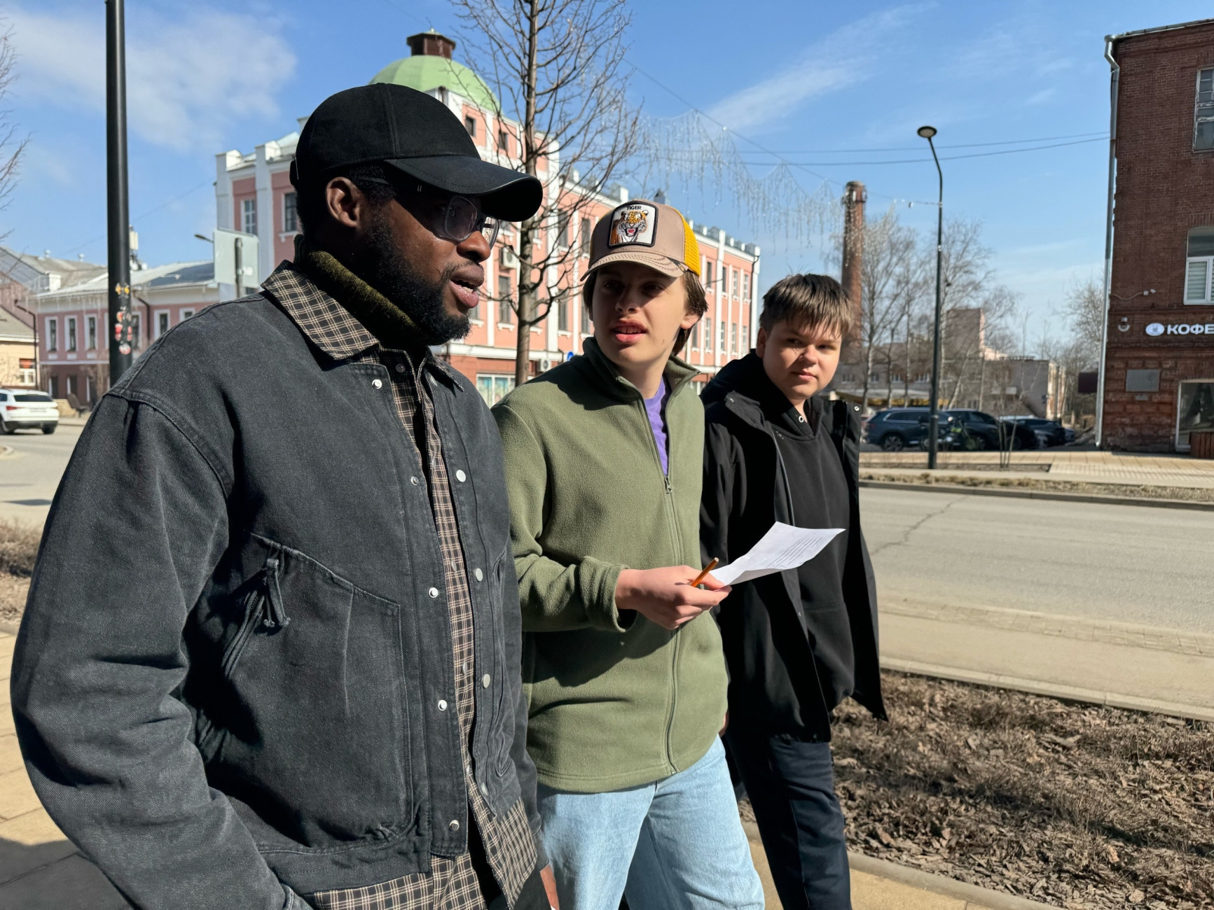 Рассказывали нашему иностранному другу про город, делились интересными фактами о важных фигурах города, задавали вопросы, знакомились и общались. И все это — на английском!