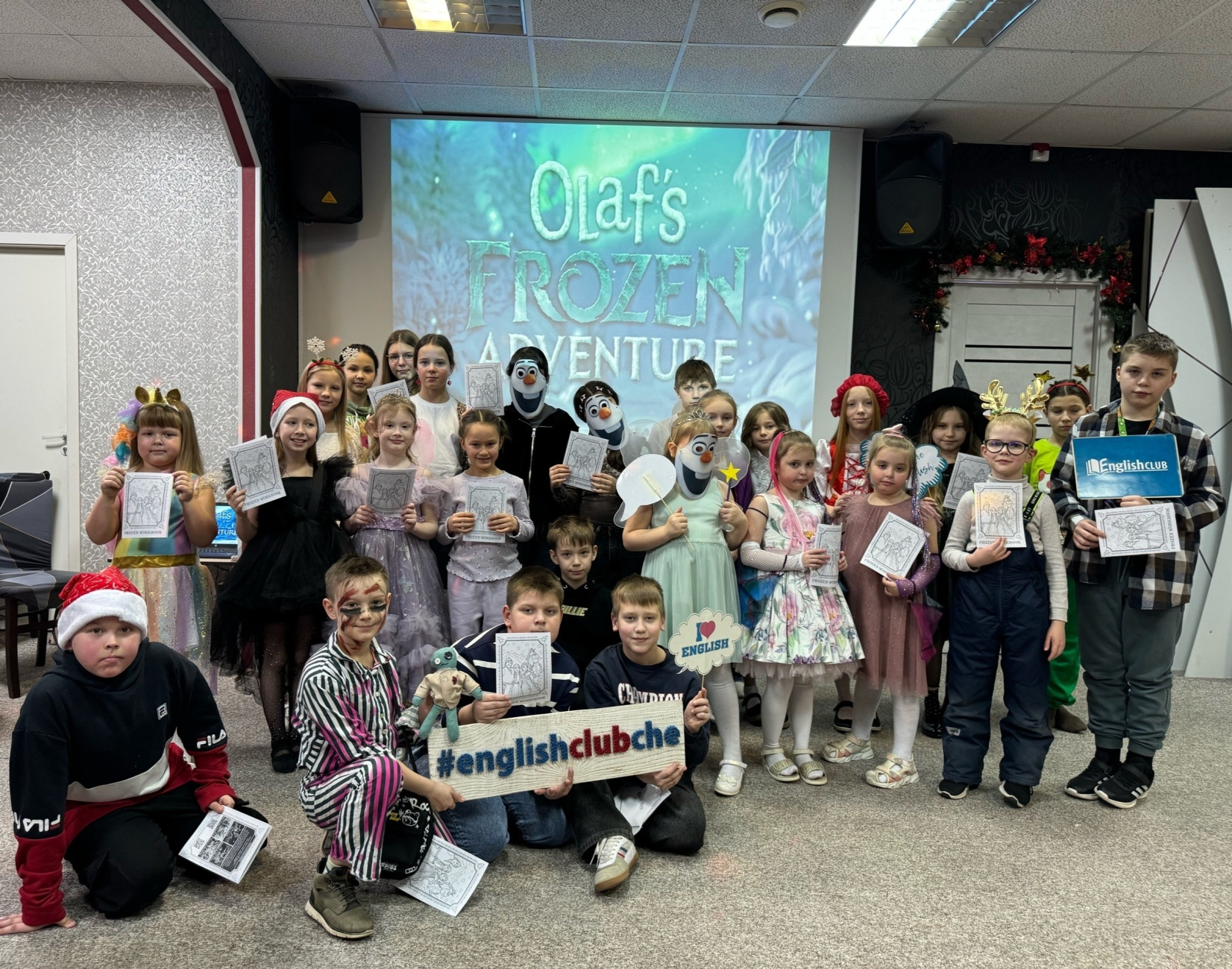 20 декабря феи, котики, единорожки и даже черепашки-ниндзя пришли смотреть мультфильм на английском — нарядные, счастливые и очень вовлеченные!