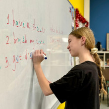 В English Club декабрь — ключевой месяц для повторения всего, что изучили студенты за полгода. На уроках ребята работают в парах и группах, обсуждают знакомые темы и закрепляют знания весело и активно.